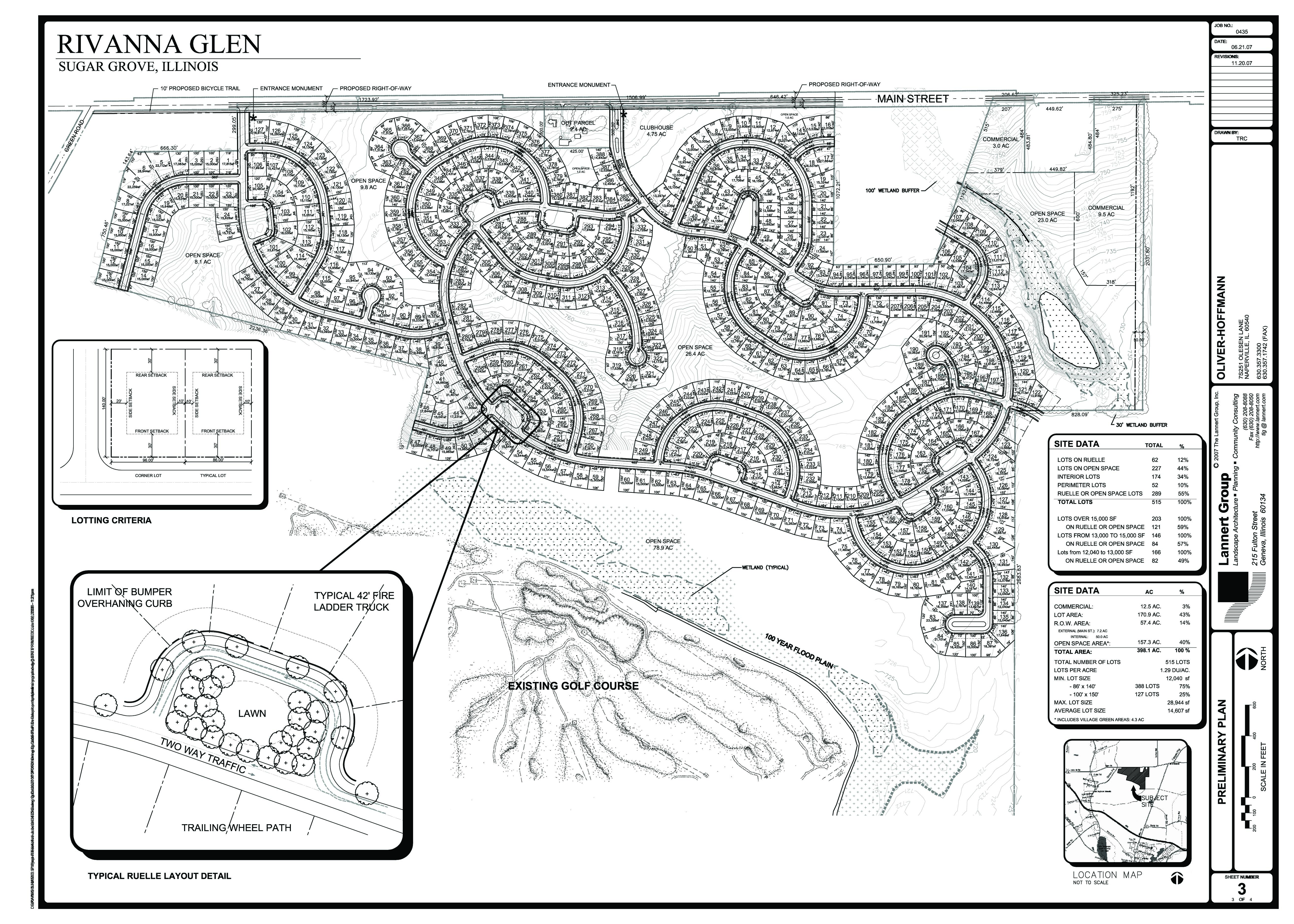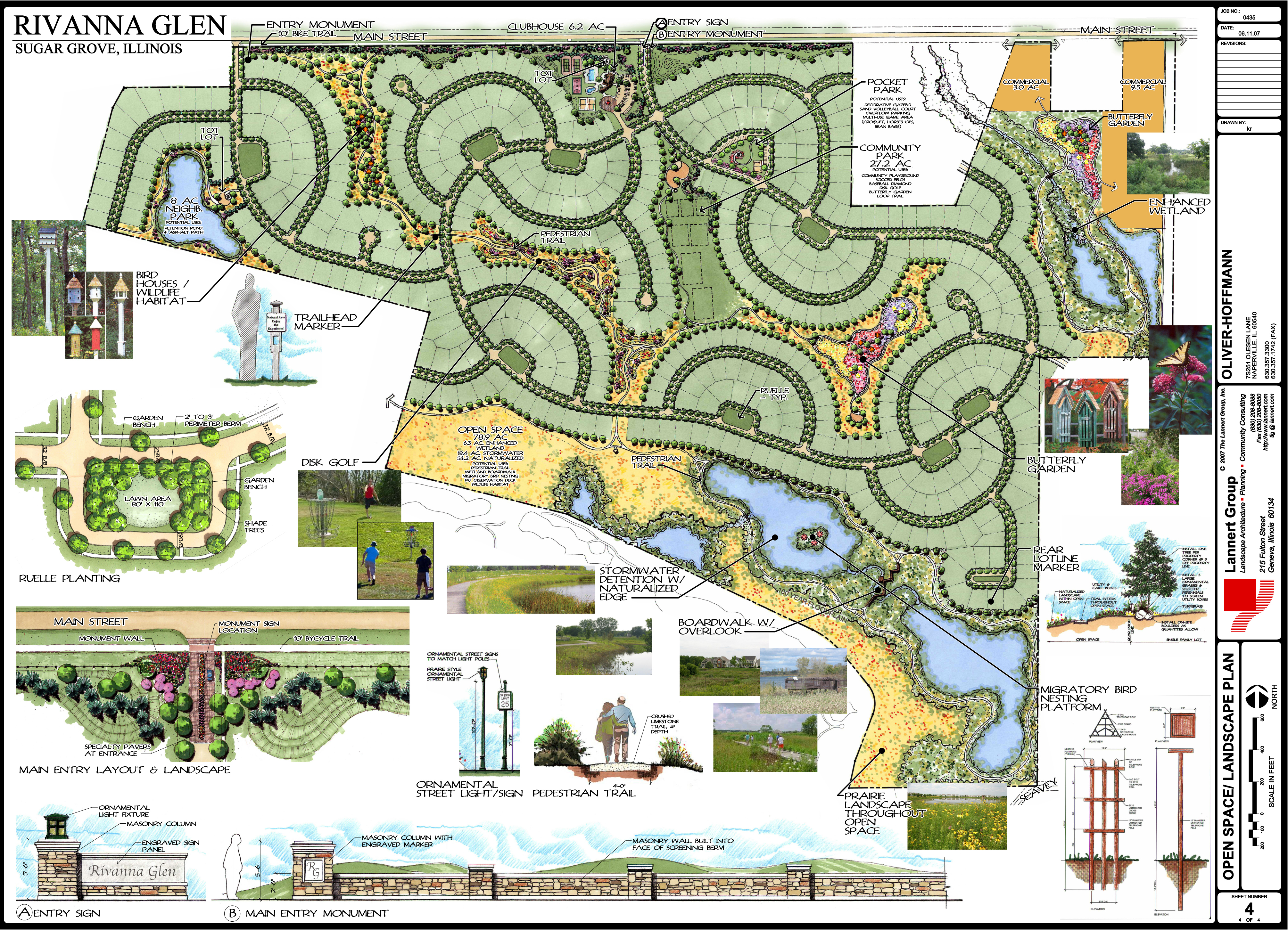 Rivanna Glen was a 400 acre site that had been completed prior to when I was hired at The Lannert Group. Subsequently, a parcel which held a private home which was originally expected to be part of the sale was removed so the location of the community clubhouse had to be moved and a number of lots had to be redrawn. I did the re-lotting, rendering touchup, and redid the project layout sheet.